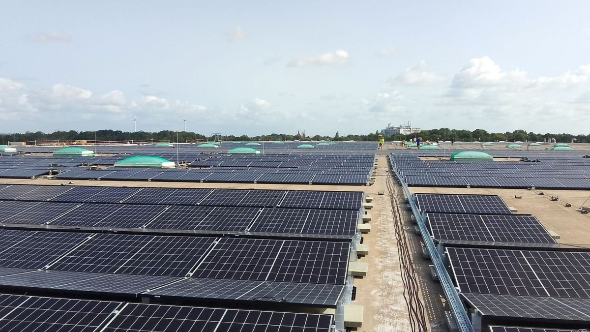 Los diseñadores del proyecto se enfrentaron al desafío de optimizar el espacio y maximizar la producción de energía. El equipo lo resolvió con nuestros paneles solares de tipo N de alta densidad Tangra S HD 440 Wp. Cada módulo, equipado con 108 células, tiene poco menos de 2 m², lo que los hace ideales para aplicaciones comerciales donde el espacio es un bien escaso. Estos módulos solares de tipo N logran una notable eficiencia del 22%, todo ello manteniendo un peso manejable de 22 kg, perfecto para tejados.