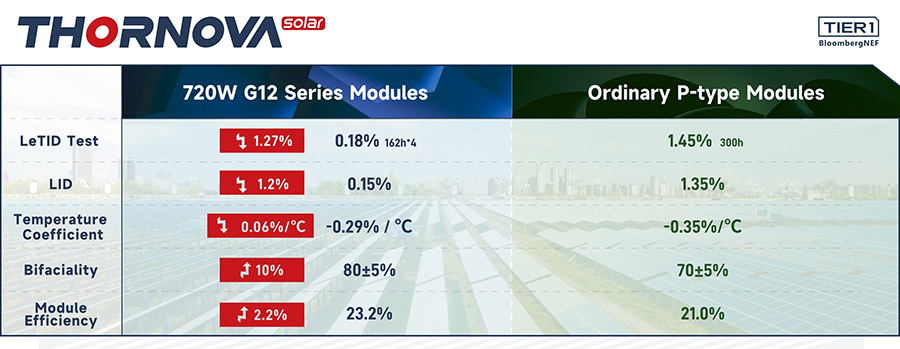 Comparison of Thornova 720W N-Type Module and P-Type