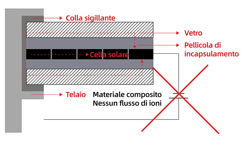 Nei pannelli fotovoltaici, la tecnologia dei telai compositi offre eccellenti proprietà meccaniche e chimiche che permettono ai nostri moduli solari di sopportare carichi più elevati e di resistere alle condizioni ambientali difficili e ai fenomeni meteorologici estremi, sempre più frequenti. Grazie alle loro eccellenti proprietà isolanti, questi telai riducono efficacemente il PID. Ciò è dovuto anche al fatto che dal telaio non fuoriescono ioni, il che significa che non è necessaria alcuna messa a terra aggiuntiva e che si riducono la complessità e i costi di installazione.
